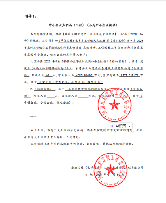 | 2、采购项目名称:宝丰县2025年农村石桥镇公益事业财政奖补普惠性项目 | |||||||||||||||||||||||||||||||