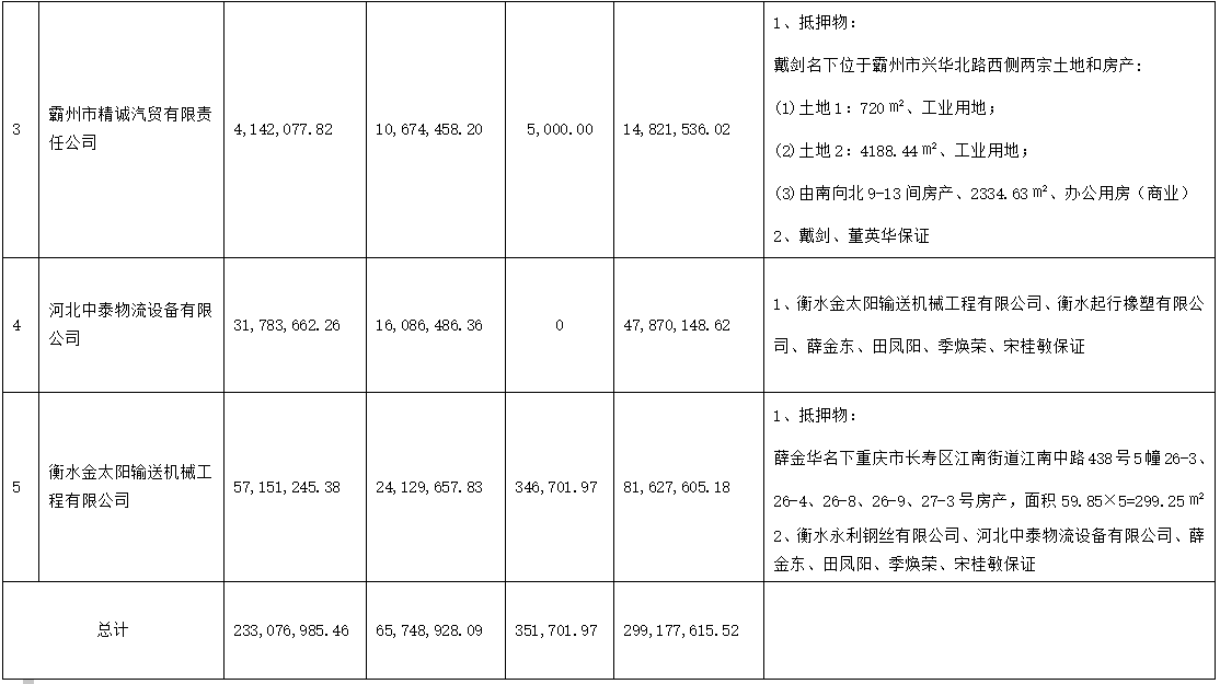 ******有限公司等5户的债权资产及其相关从权利,债权总额299,177,615.52元,其中本金233,076,9******************有限公司的债权已诉讼,其余3户债权均处于执行程序。担保方式为抵押+保证。